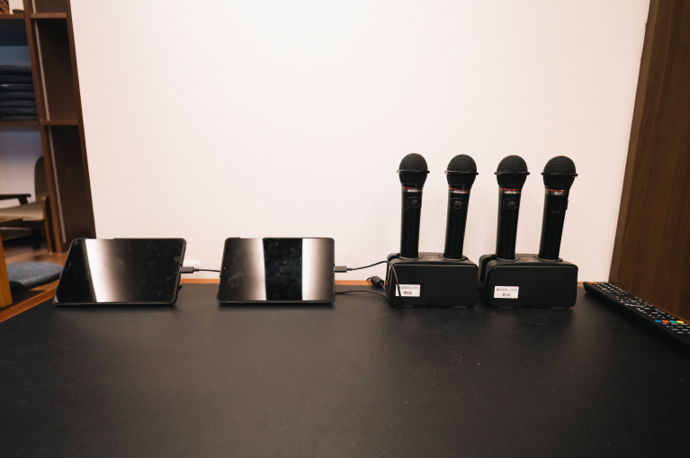 Karaoke, a party essential, is also available for your enjoyment. Please note that volume levels are restricted to ensure a comfortable environment.