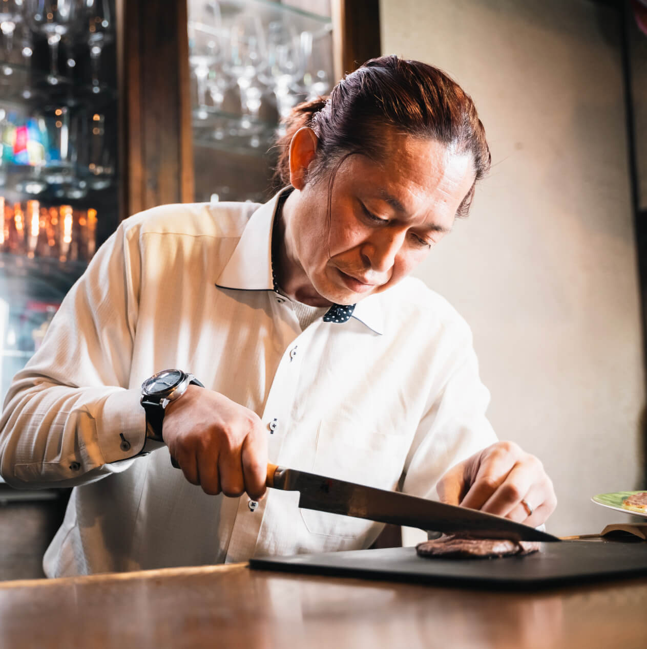 美味しい牛肉料理を届けたい、牛肉ハムの美味しさを多くの人に味わってもらいたいとの想いで、キャリア40年の目利きの父との共同経営を経て、独立。